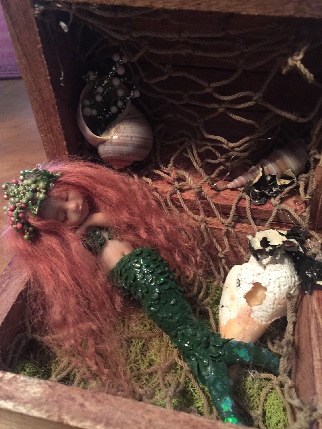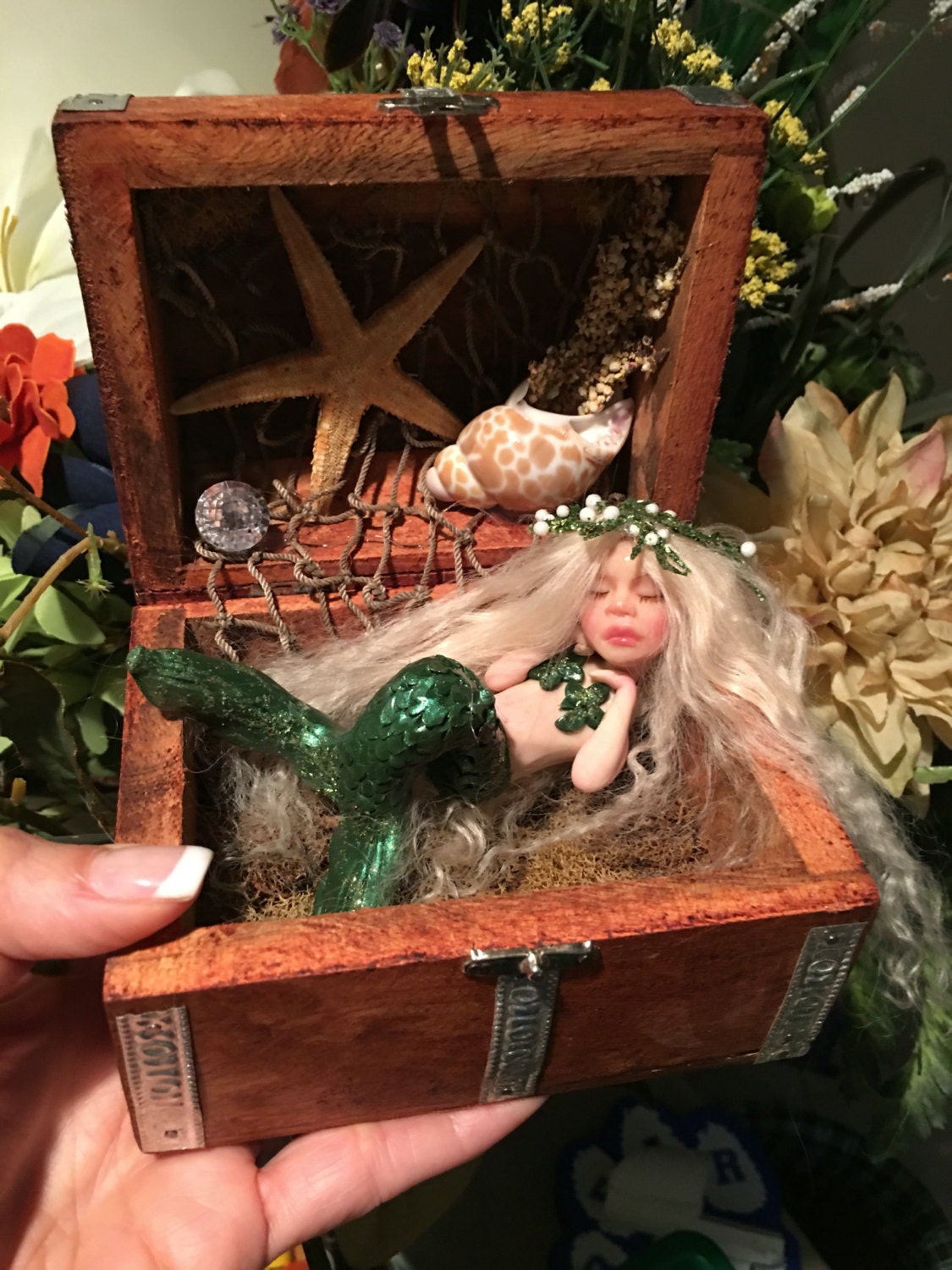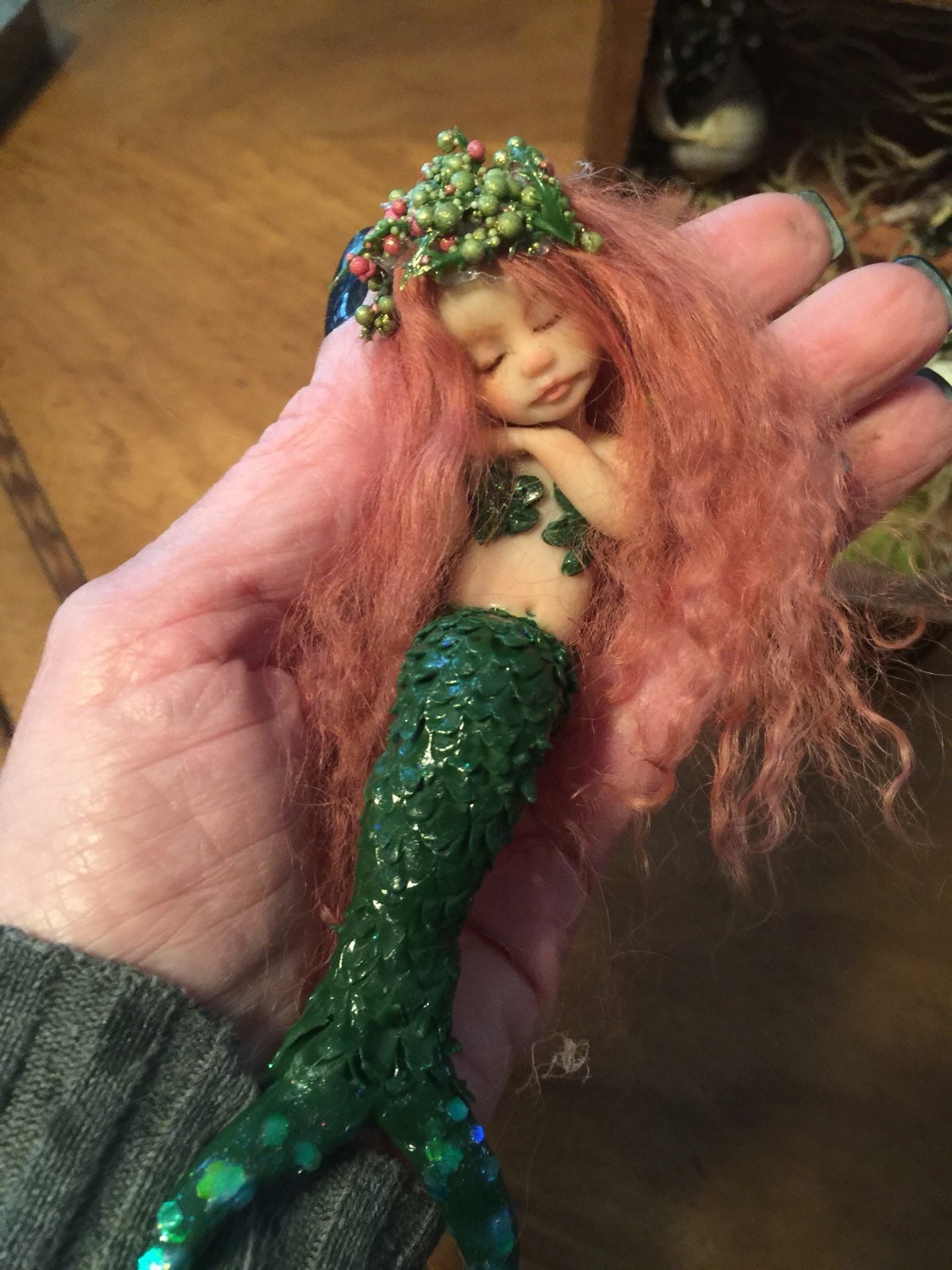 Please note that this item is made to order and faces may be slightly different, but she will still have the same emerald green tale and accents.