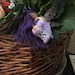 This teeny tiny fairy is 2 1/2 inches long. Cloe has a cute fabric dress and silky hair made from yarn. Her boots are made from clay. She does have iridescent wings that may vary in color slightly. Each fairy will have hand painted tattoos on her face and boots.